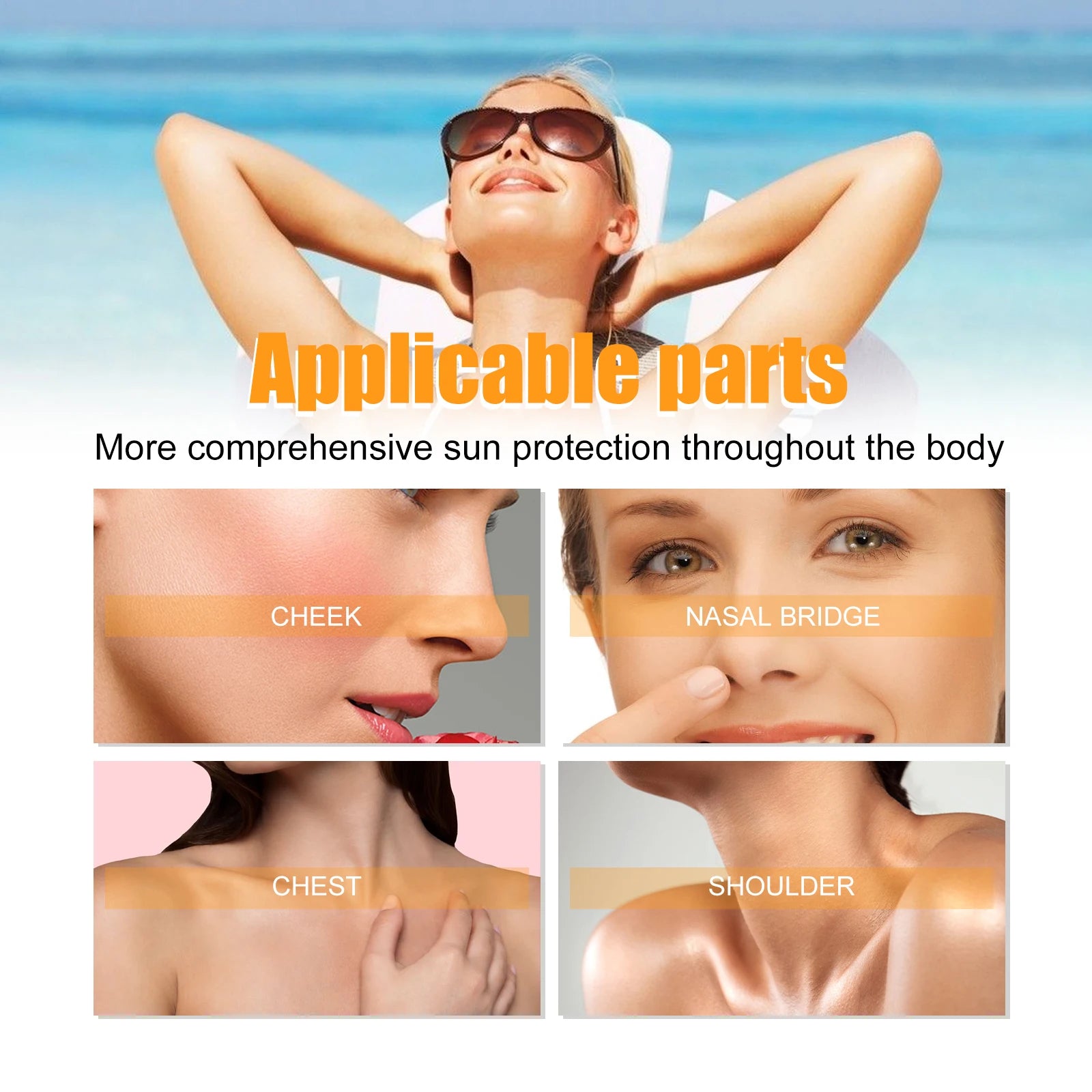 1.15-20 minutes before going out, apply the sunscreen stick evenly on the face or parts of the body that need sunscreen, massage until completely absorbed, and then form a film naturally.