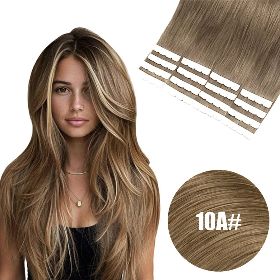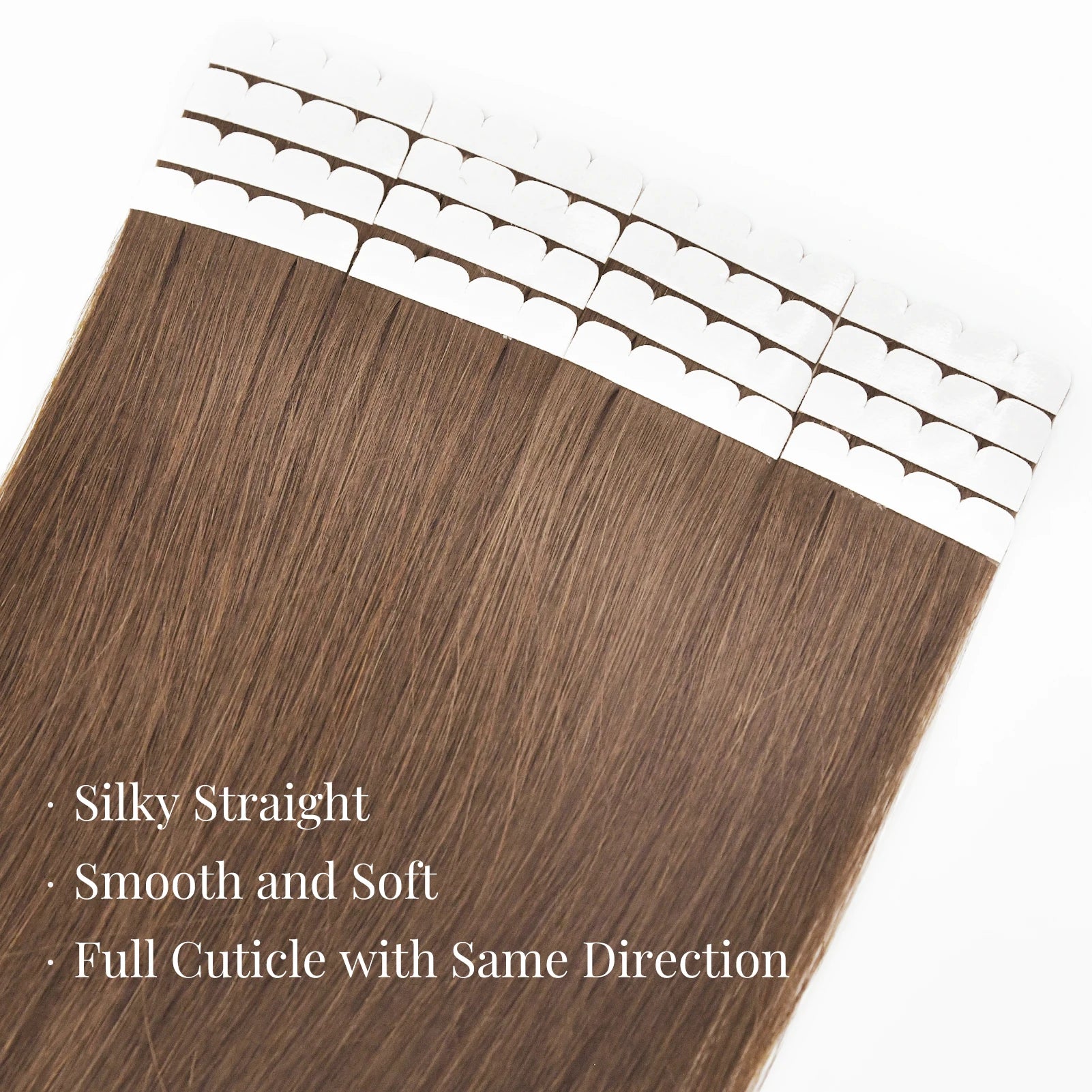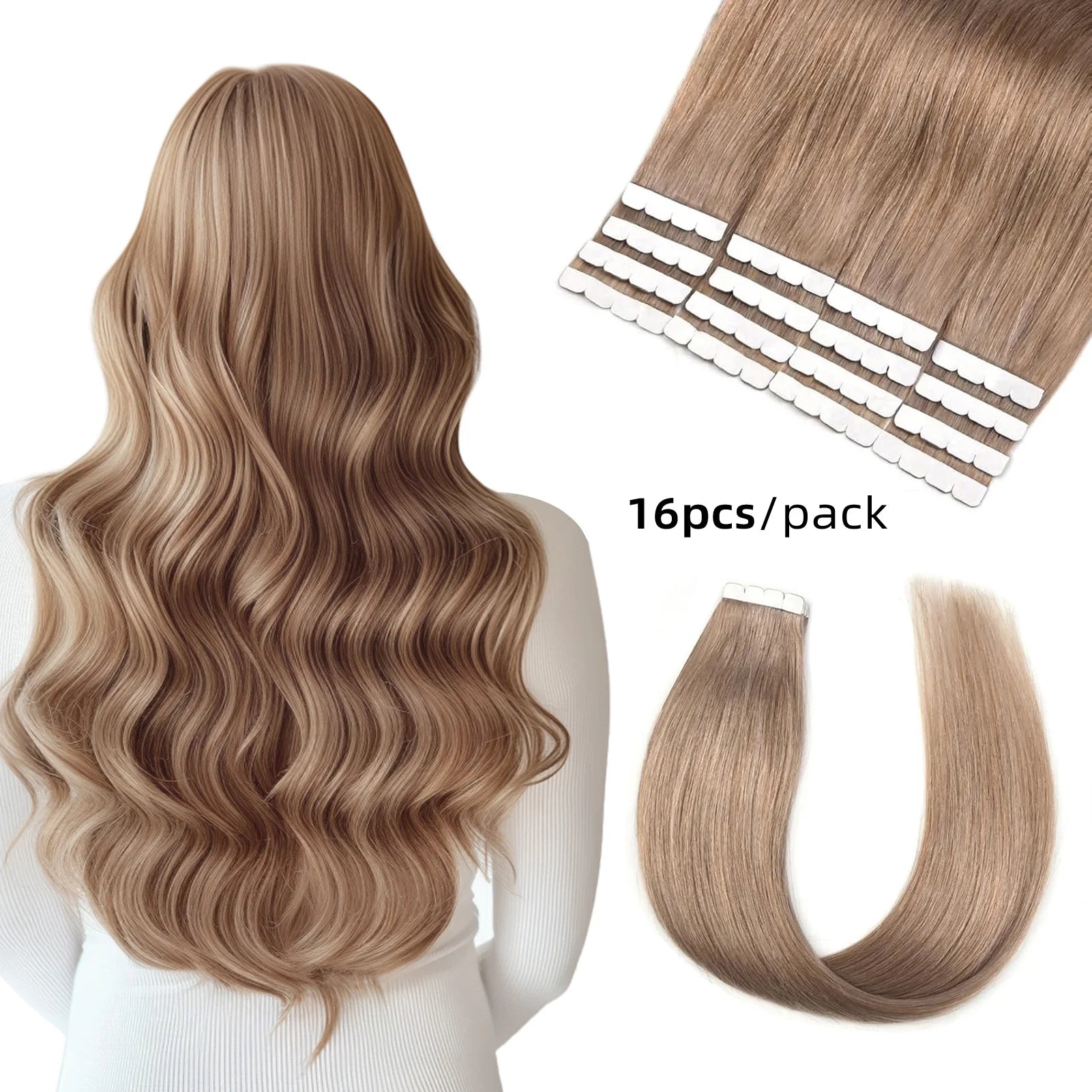16pcs Ash Brown Mini Tape In 100% Human Hair Extensions Strap Seamless Invisible Straight Strap Real Human Hair 12''-24''
