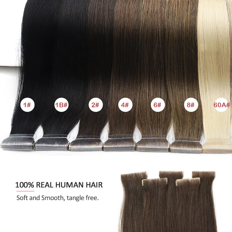 16pcs Ligh Blonde PU Skin Tape Hair Extensions Invisible Adhesive Tape Human Hair 60A# PU Straight Hair Piece 12inch 16inch 20inch 24inch