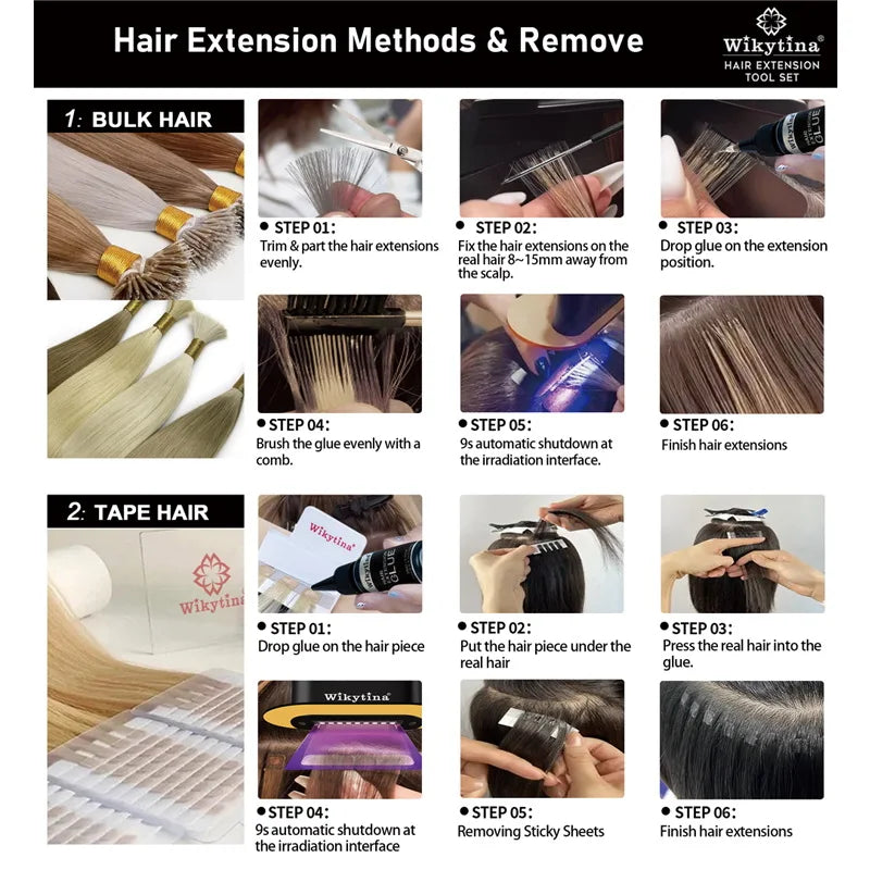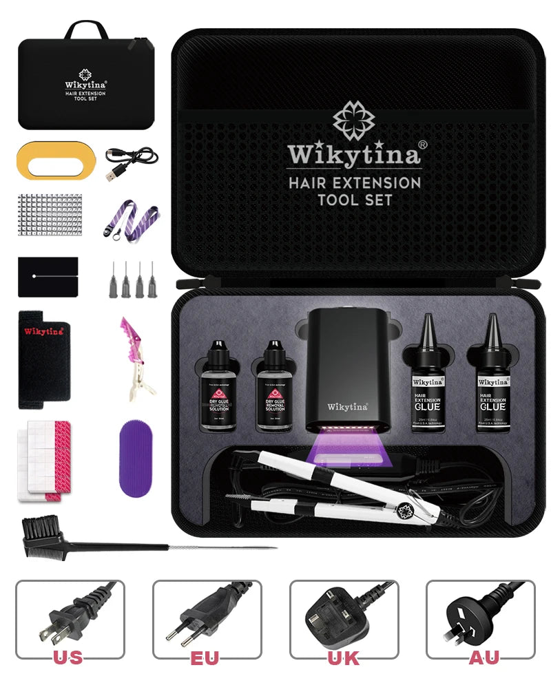 2025 UV V Light Hair Extension Set Wikytina Tools Kit, UV Extension Glue Long-Lasting Remover Machine - Salon Styling Tools