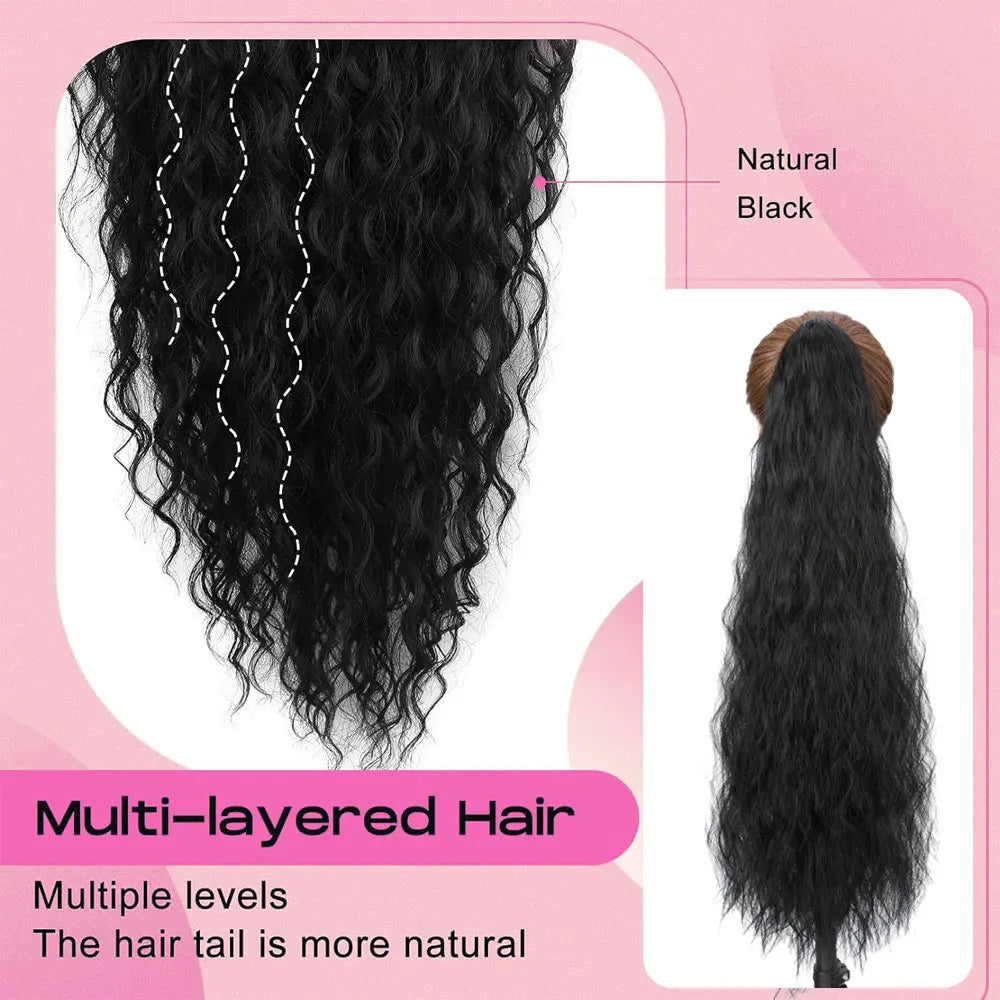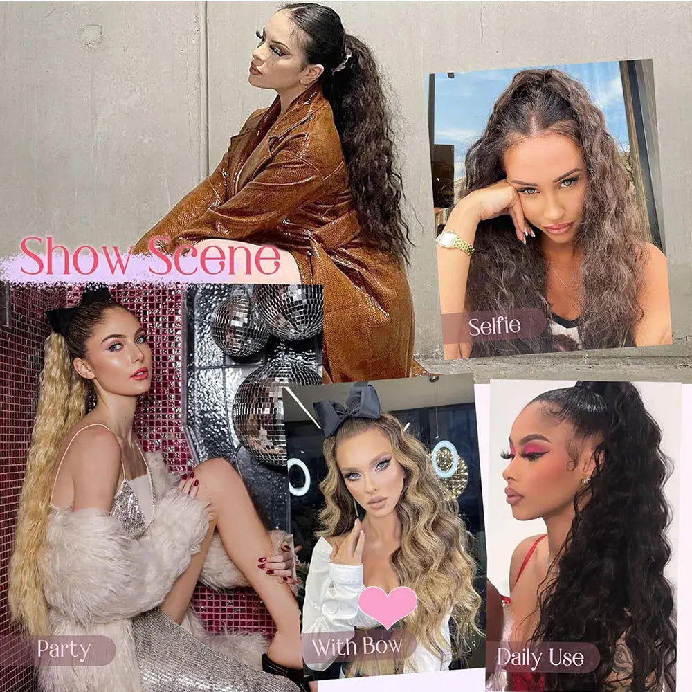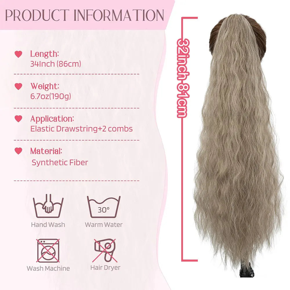 32" Long Curly Drawstring Ponytail Synthetic Hairpiece for Women Blonde Black Ponytail Clip in Hair Extensions for Daily Cosplay