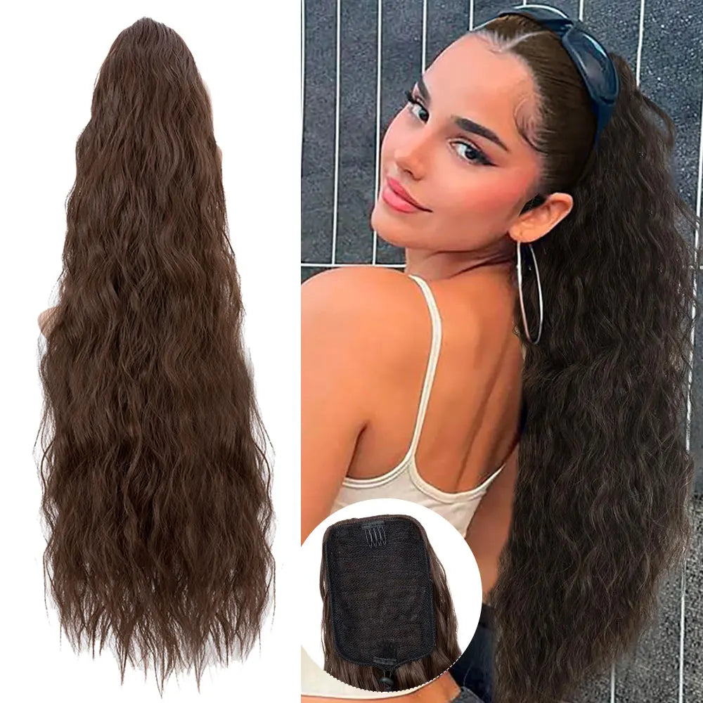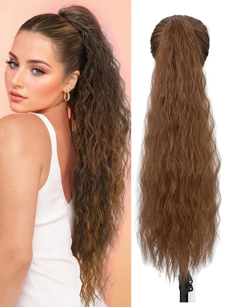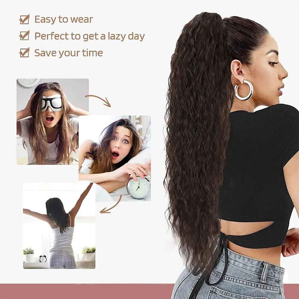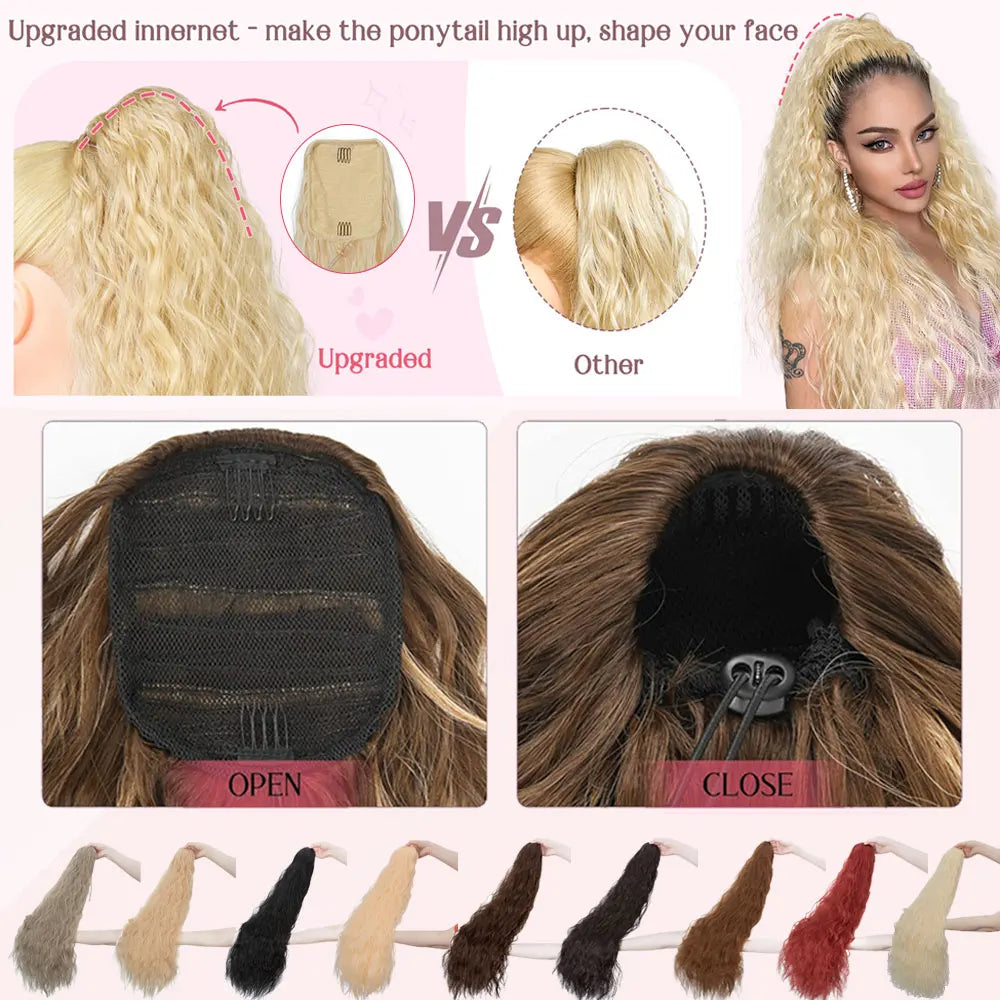 32" Long Curly Drawstring Ponytail Synthetic Hairpiece for Women Blonde Black Ponytail Clip in Hair Extensions for Daily Cosplay