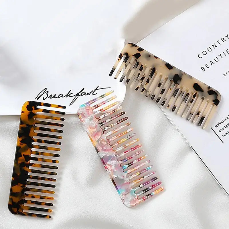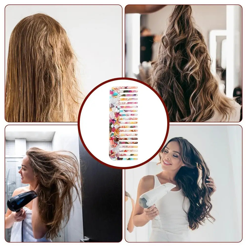 Acetate Hair Comb Antistatic Marbled Wide Tooth Detangling Comb Wide Tooth
