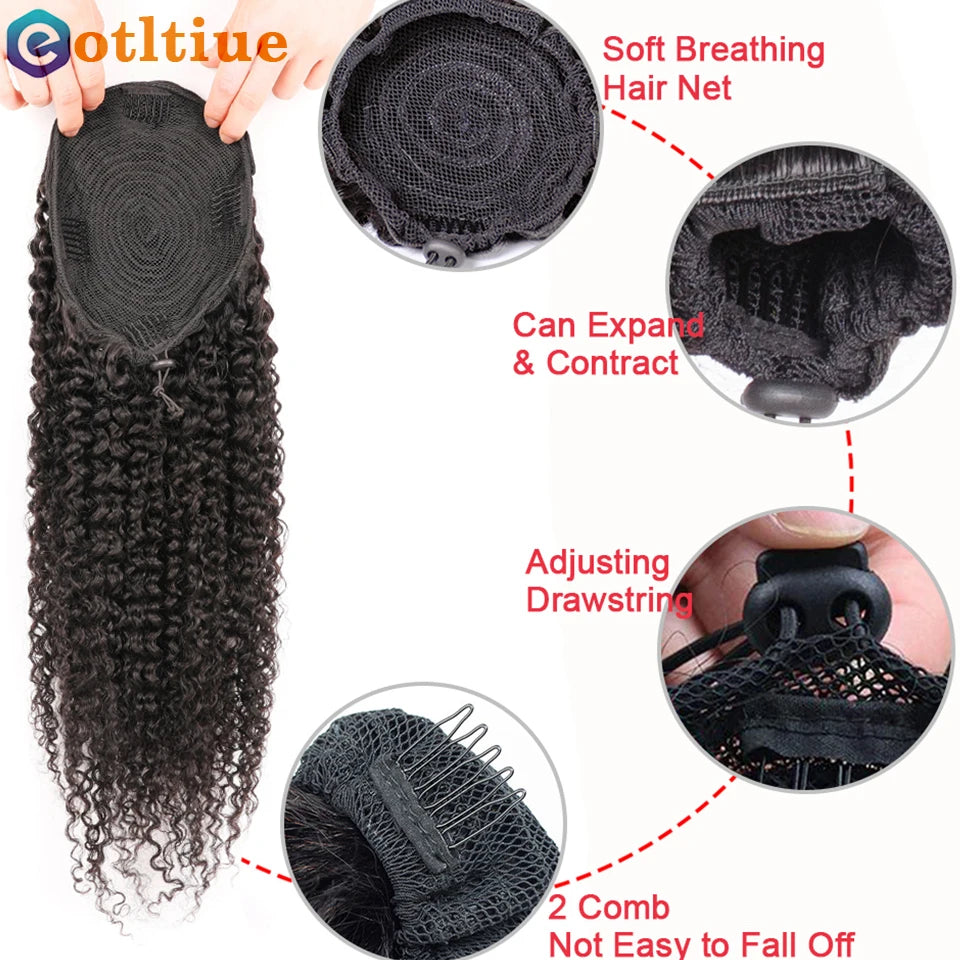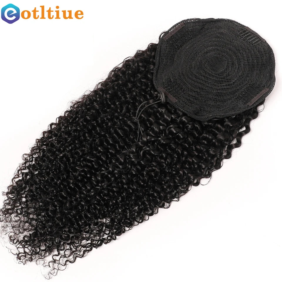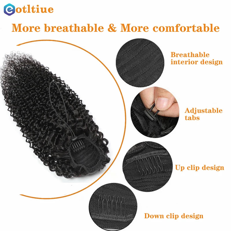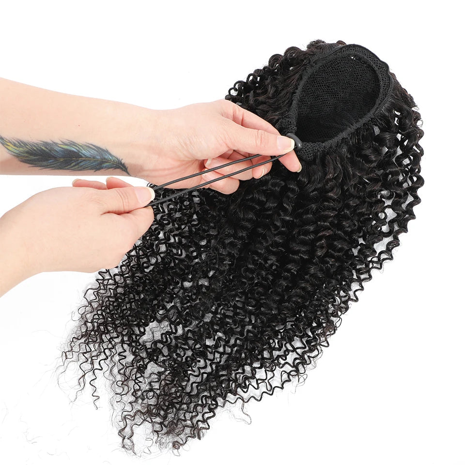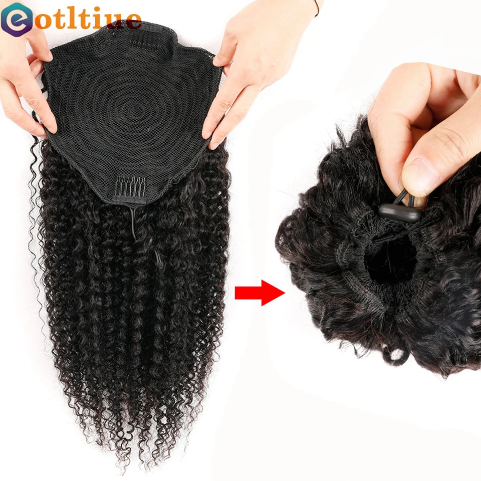 Kinky Curly Hair Extensions Drawstring Puff Ponytail Brazilian Real Human