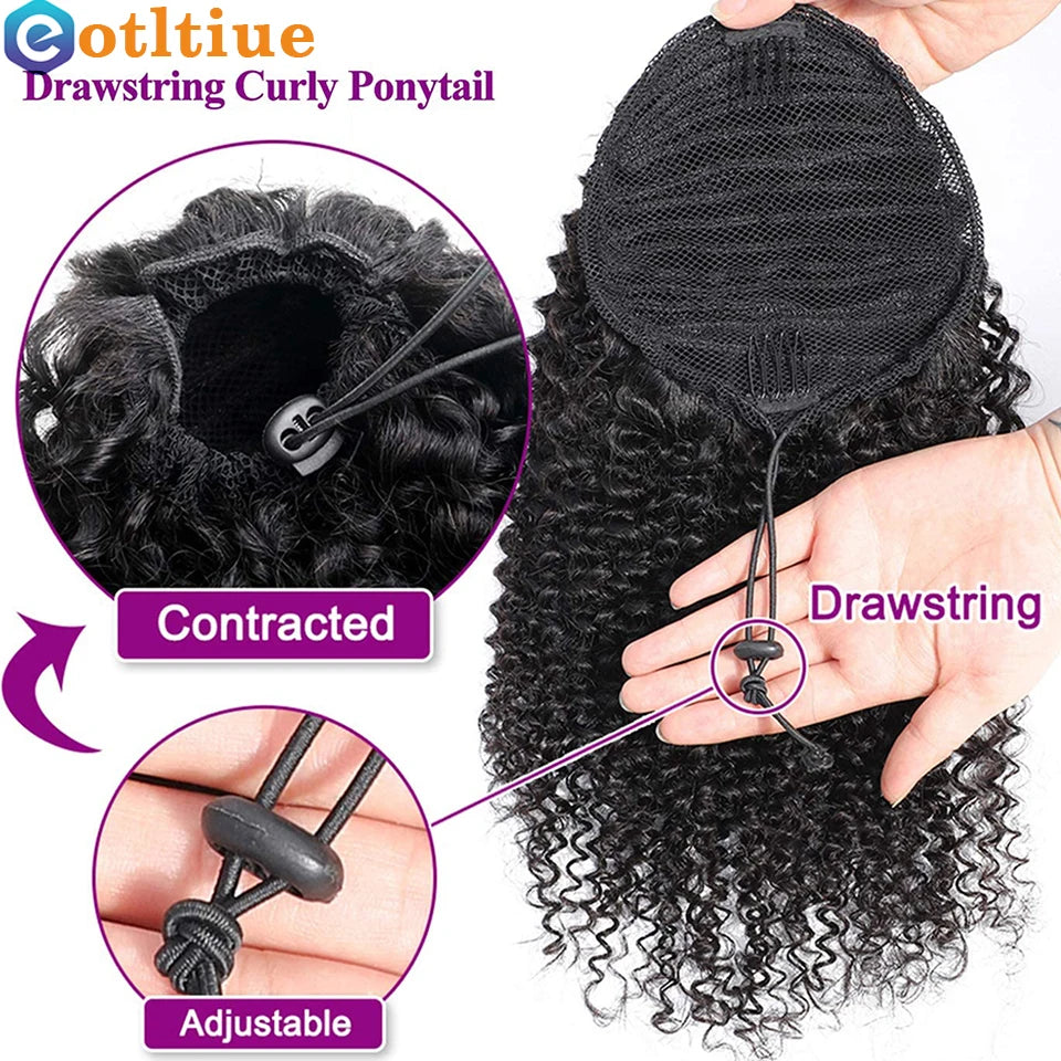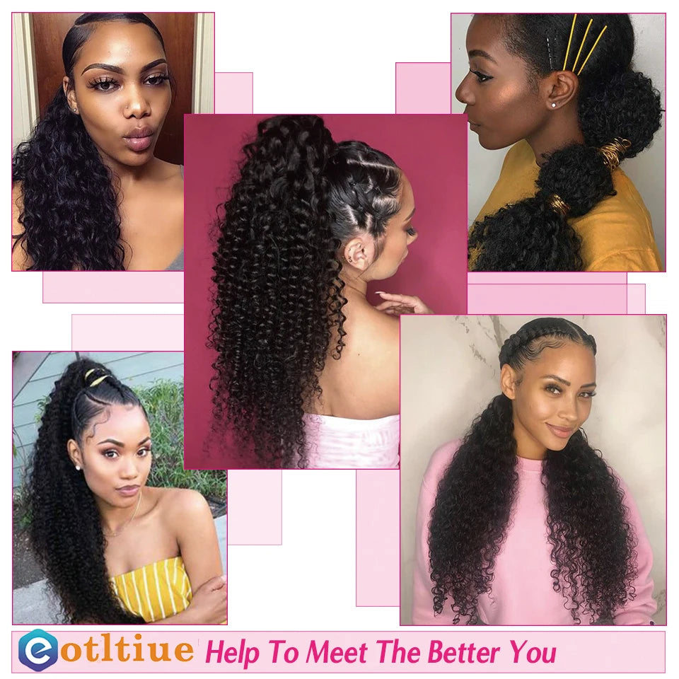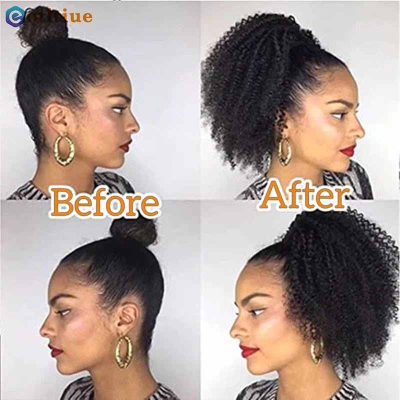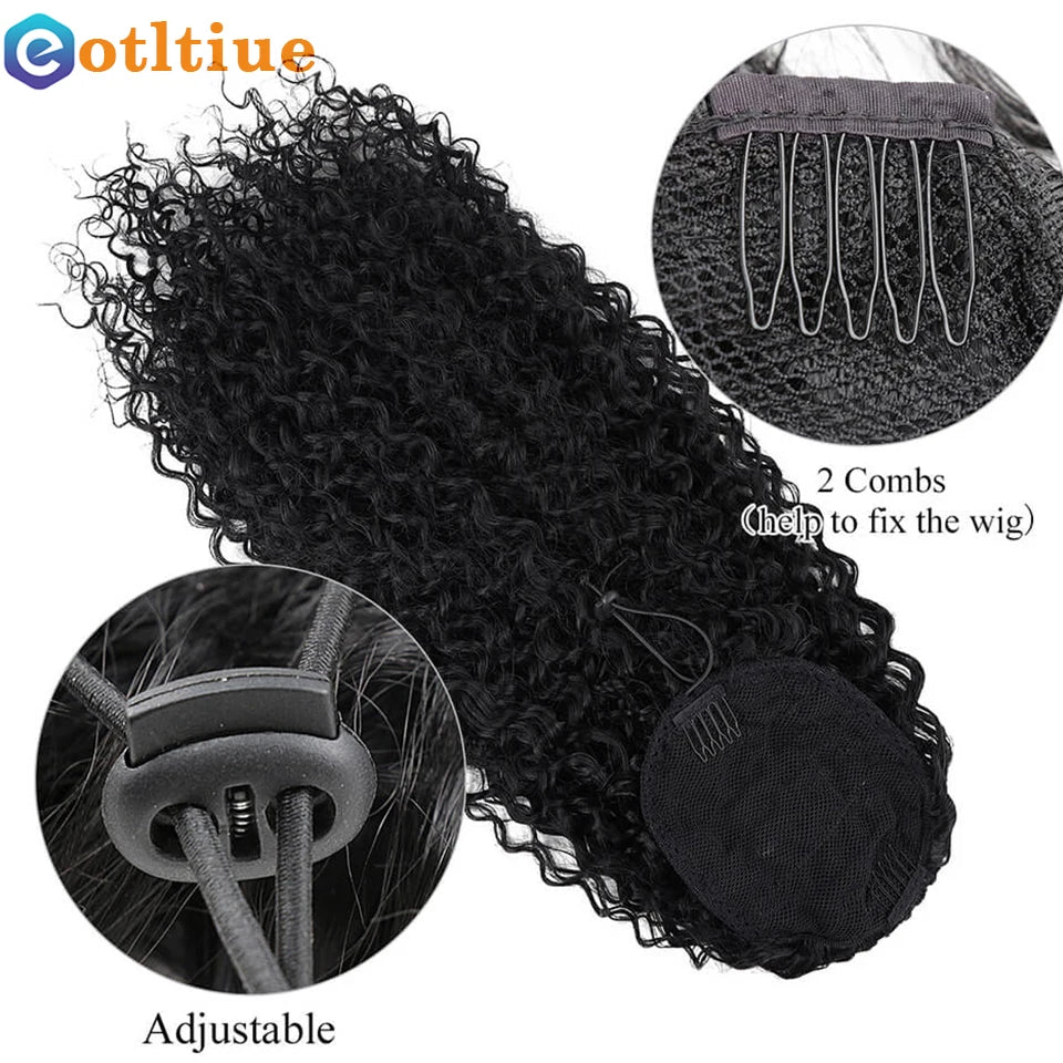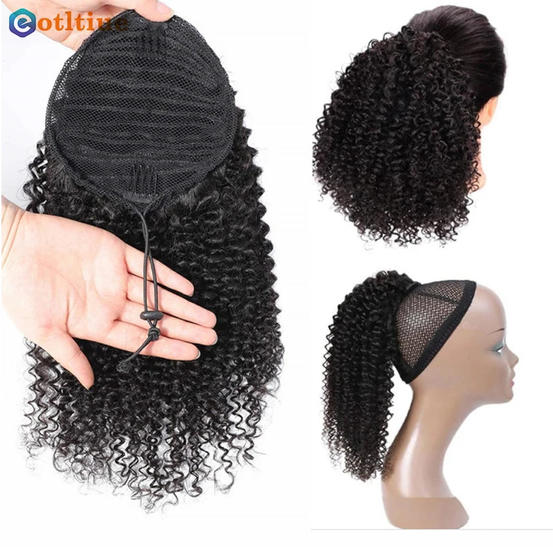 Kinky Curly Hair Extensions Drawstring Puff Ponytail Brazilian Real Human