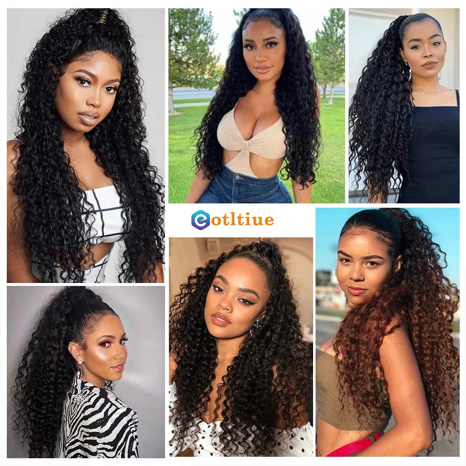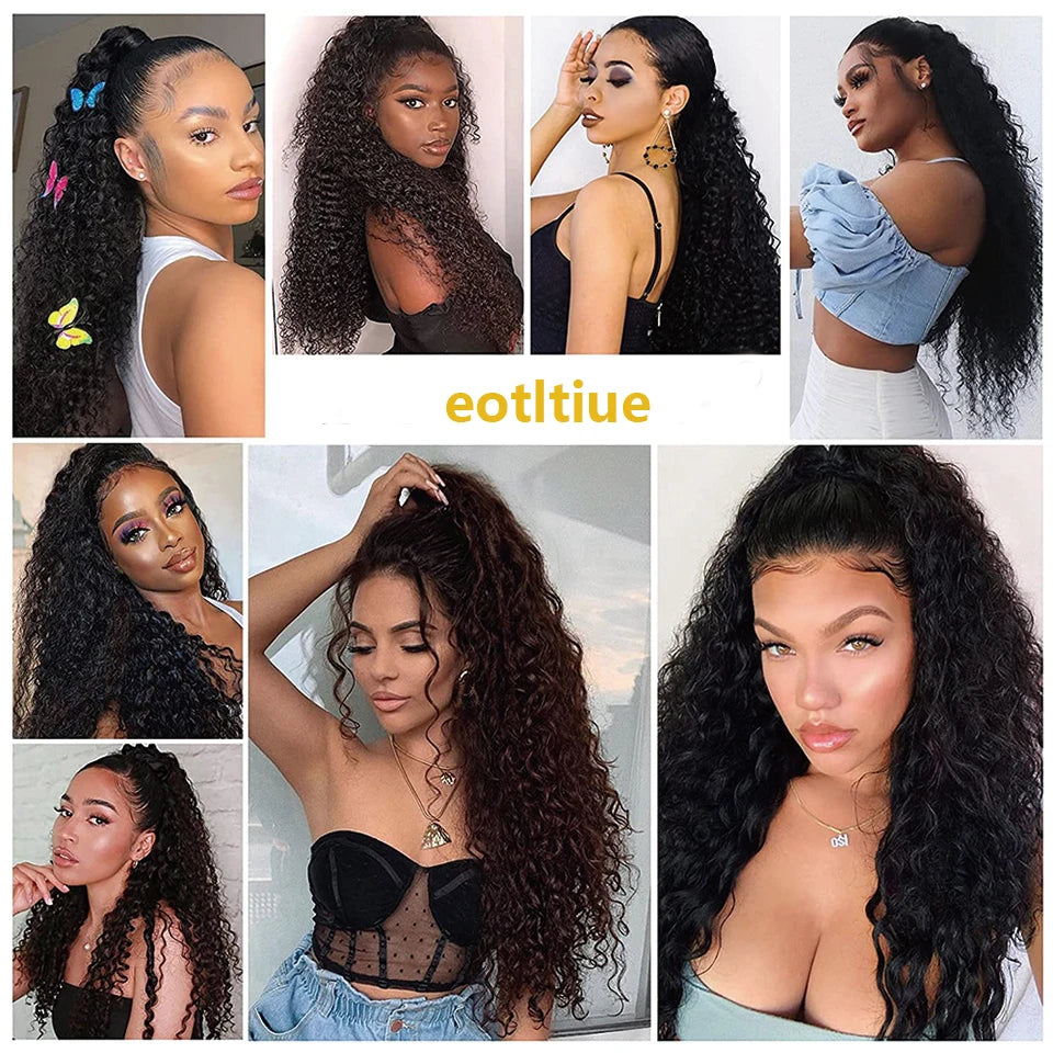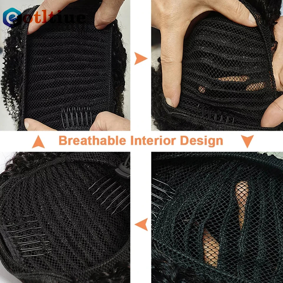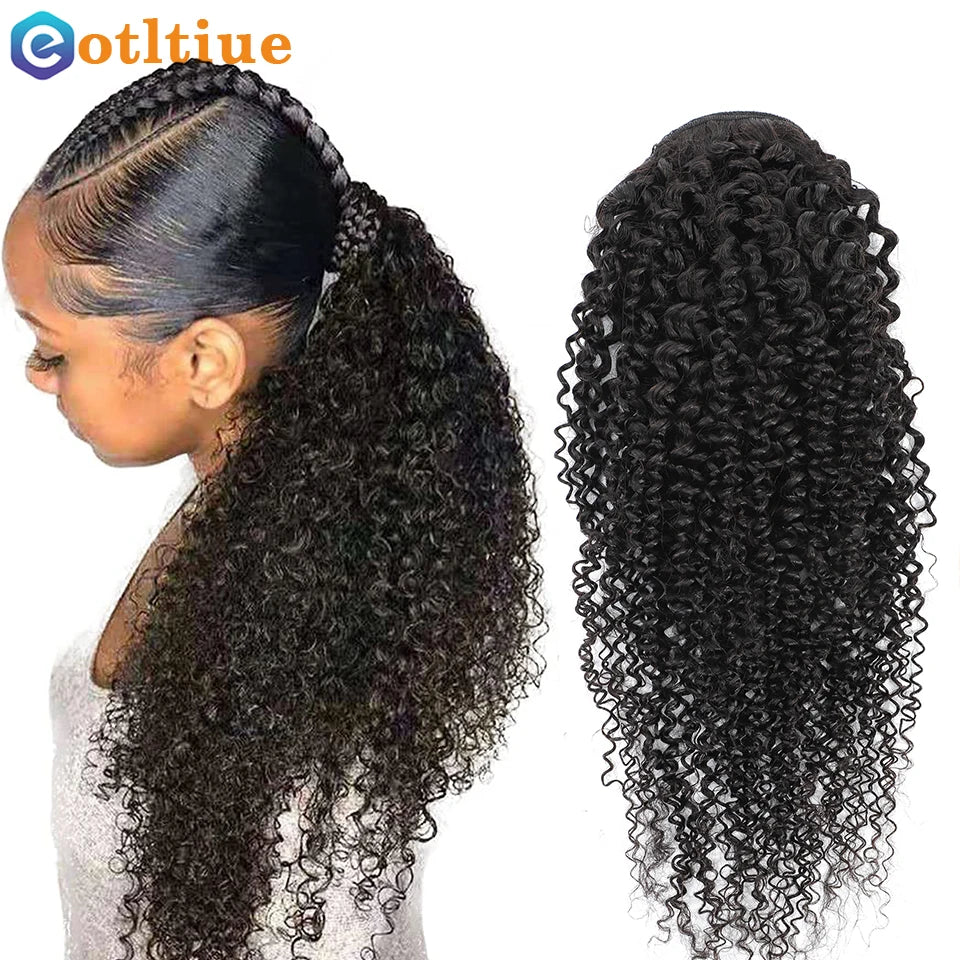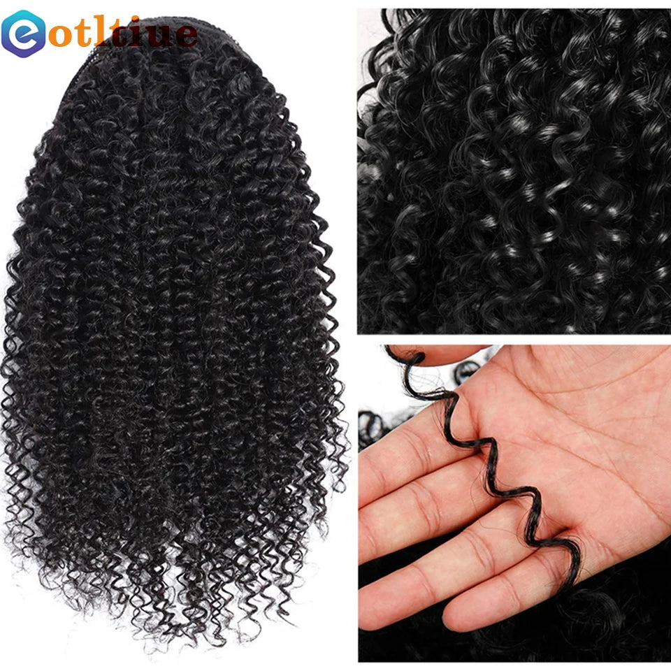 Kinky Curly Hair Extensions Drawstring Puff Ponytail Brazilian Real Human
