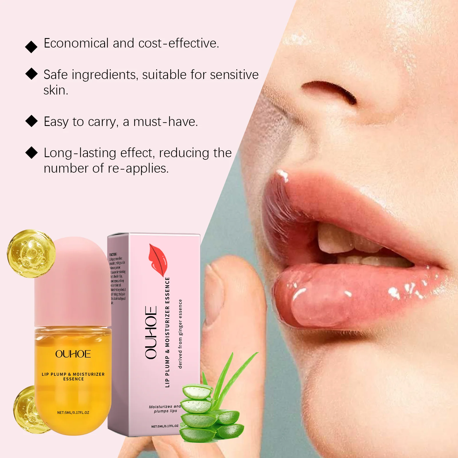 OUHOE Lip Plump Moisturizer Essence, added with ginger extract, can effectively promote blood circulation in the lips, making the lips naturally pink and plump. It easily helps you say goodbye to pale lips and create charming plump lips. Whether with no makeup or wearing makeup, it can make your lips more outstanding.