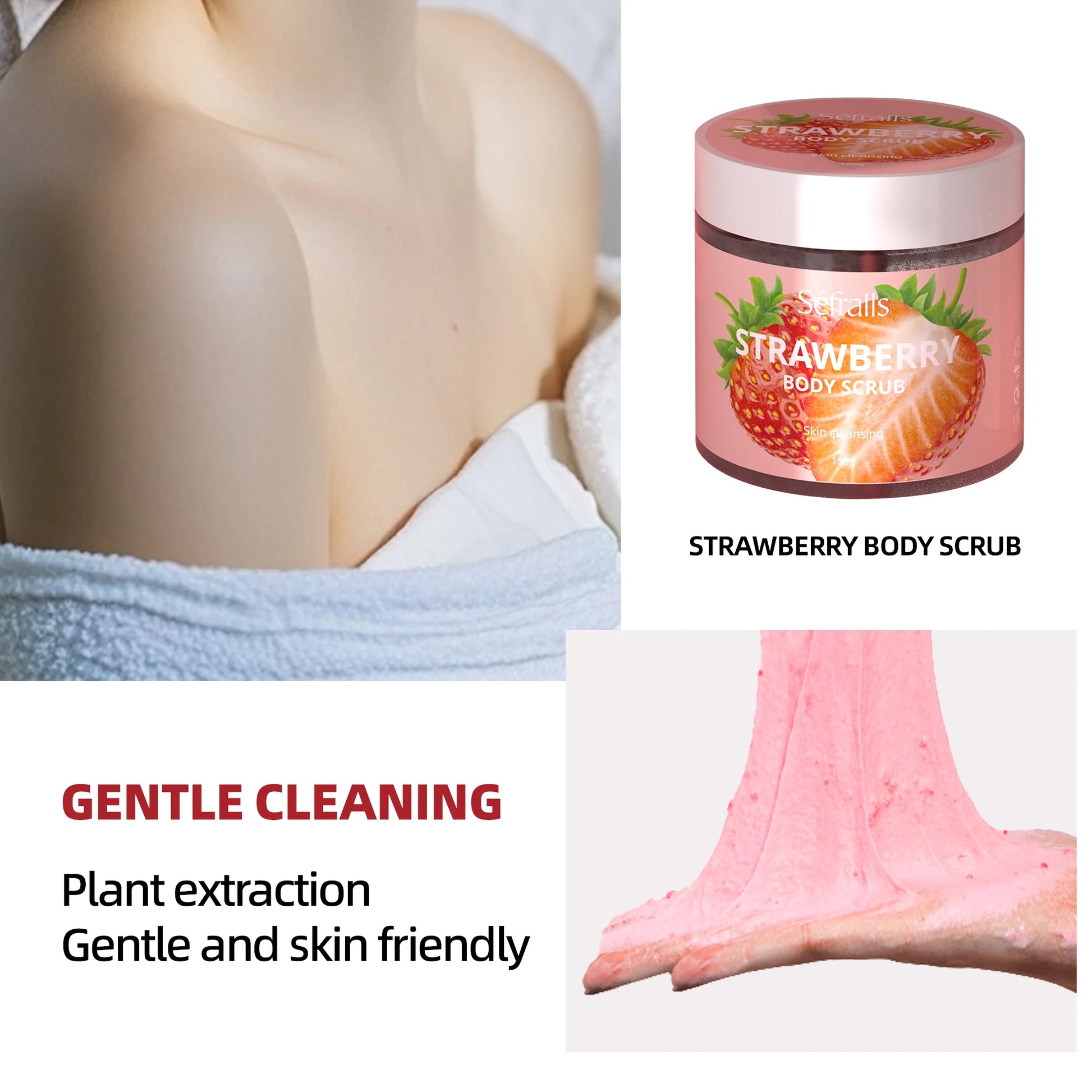 The 150g Strawberry Body Scrub is your skin’s "polishing magic weapon."