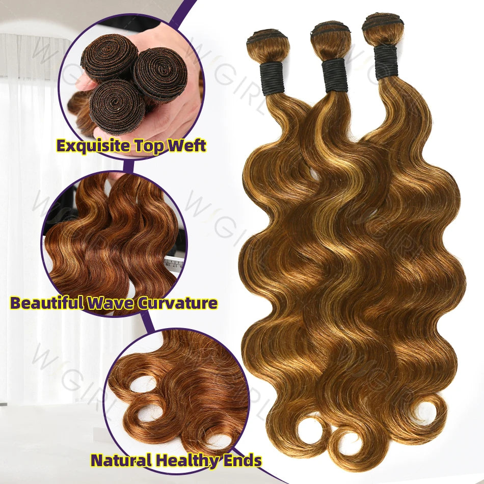 Wig girl Highlight Body Wave Raw Bundles 100% Human Hair